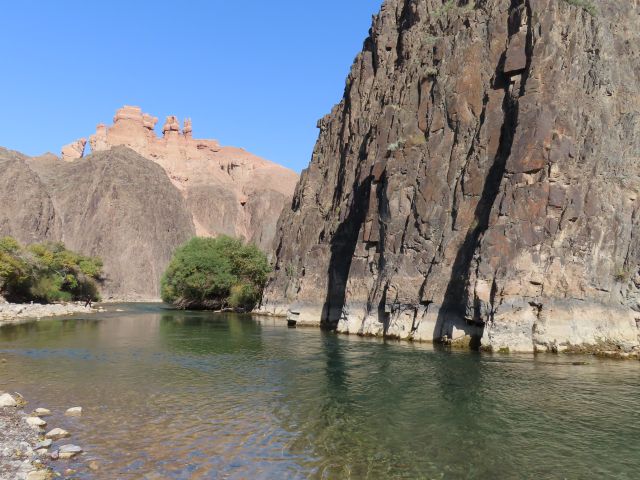 Wandern im Charyn Canyon - unten drin am Fluss. |