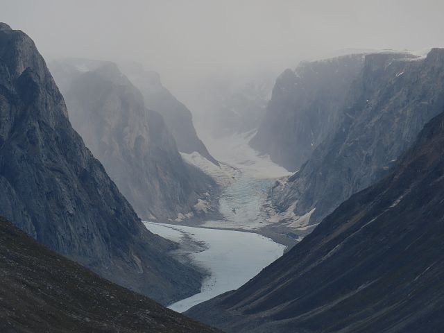Schroff Schluchten mit eisigen Gletschern am Kangerlussuaq. |