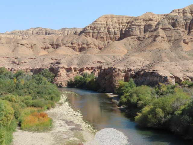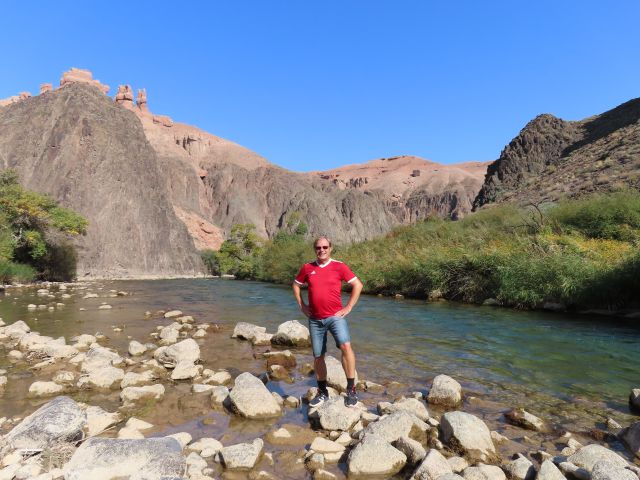 Wandern im Charyn Canyon - unten drin am Fluss. |