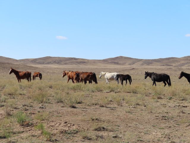 Pferde gibt es viele in der endlosen kasachischen Steppe. |