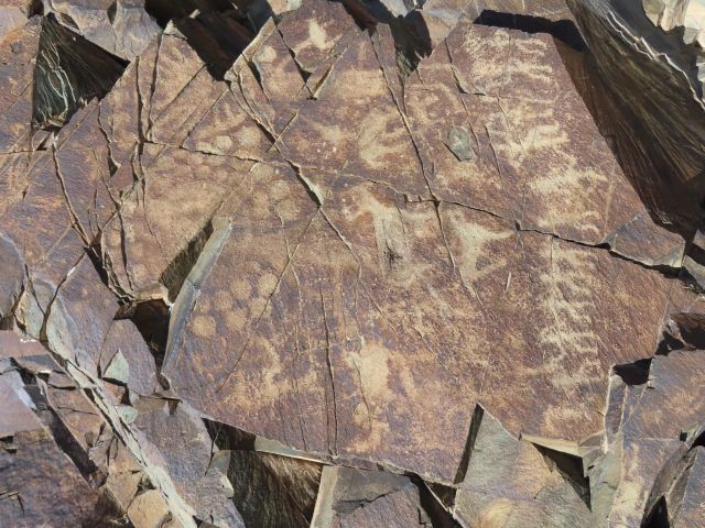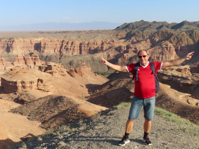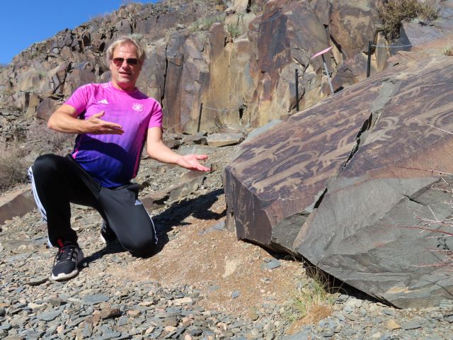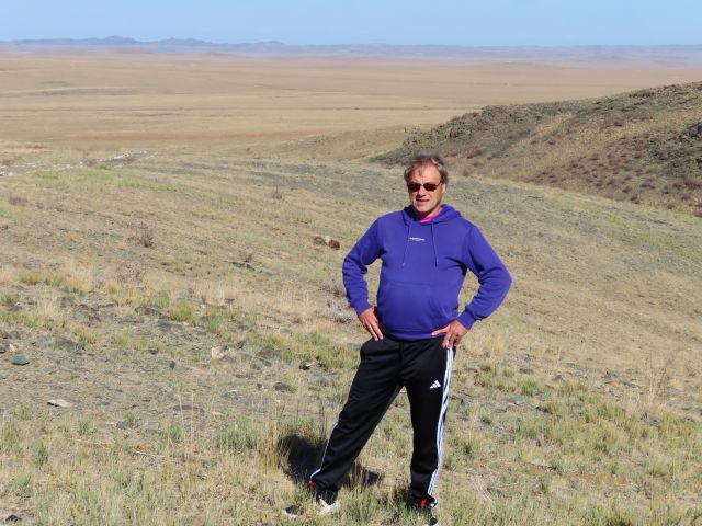 Wandern in der kasachischen Steppe bei den Tanbaly-Petroglyphen. |